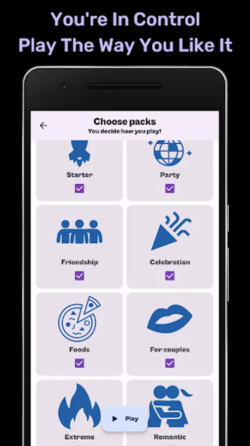 A lot of the party games are popular among couples. You can choose categories crafted for those in love by composing the packs that appear. Start creating a stronger bond with your second half now.You'll get closer to your friends