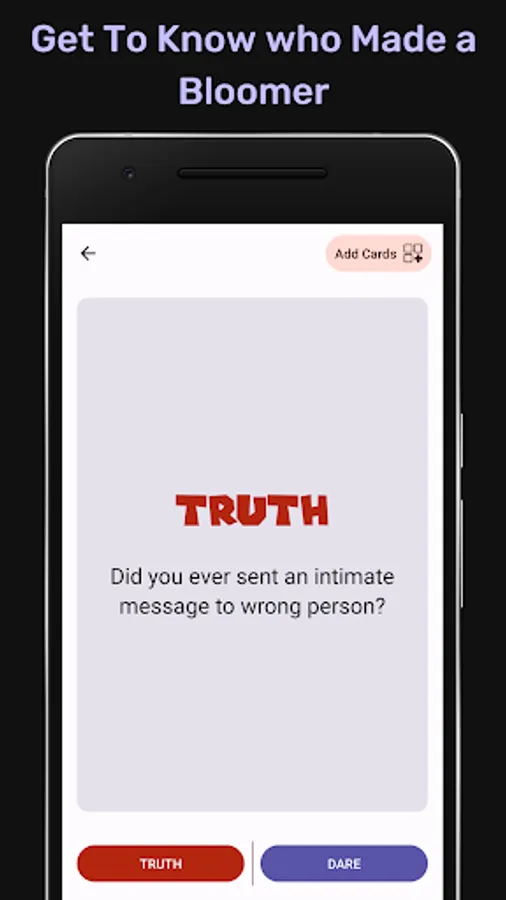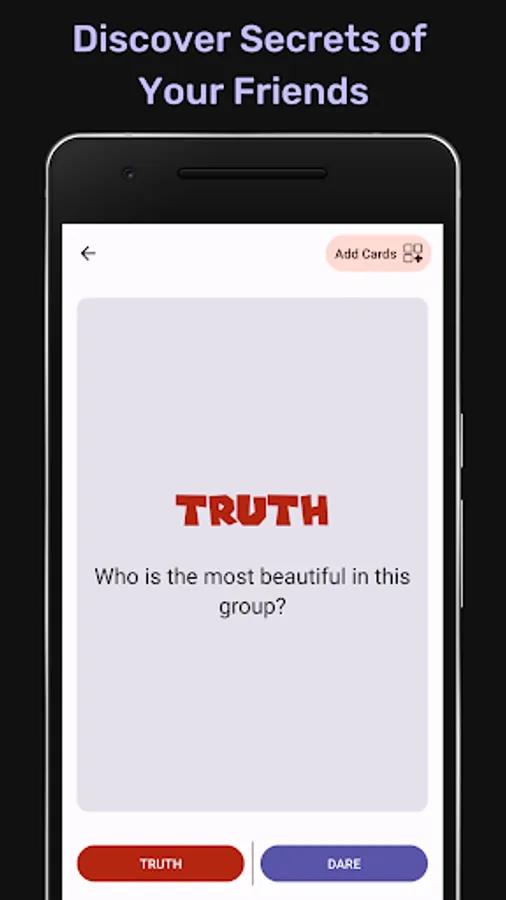 Discover what your friends or partner are hiding from you. Finding out private details about each other brings you closer. If you're looking for a game that helps you create strong a bond with others, then you'll find something for yourself in truth or dare.Beat party boredom