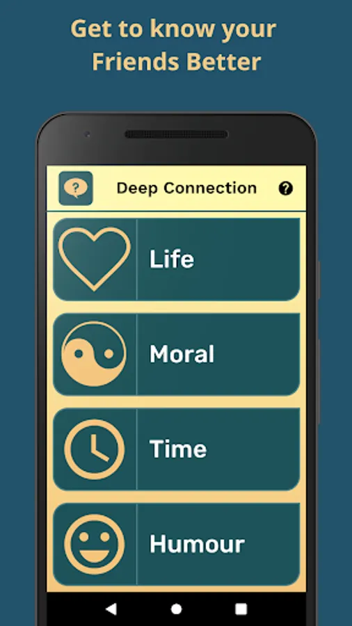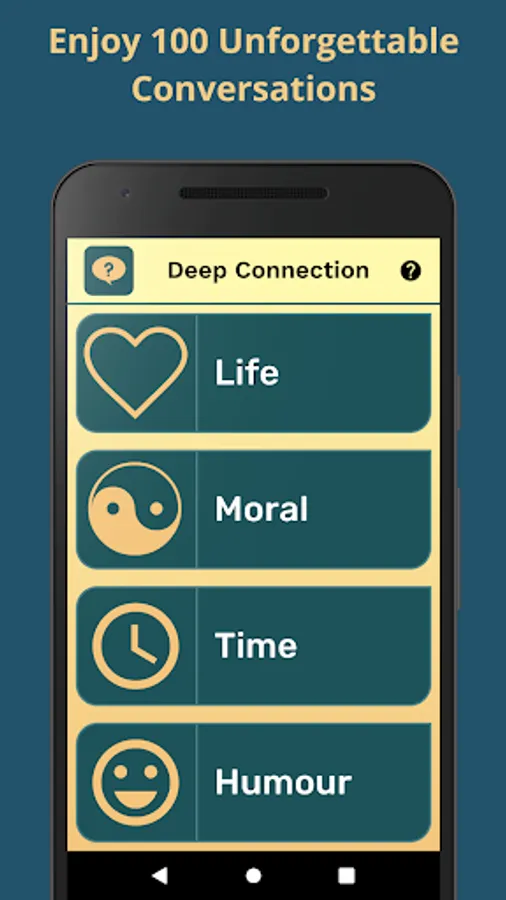 Then Deep Connection is a perfect answer. This game was created with your help and tested with couples. This ensures that the app has the best possible questions and categories.Questions for couples