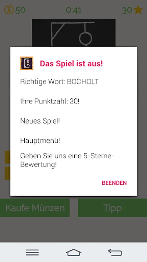 Hangman German is now on Android with the online scoreboard feature! Play hangman for free!
