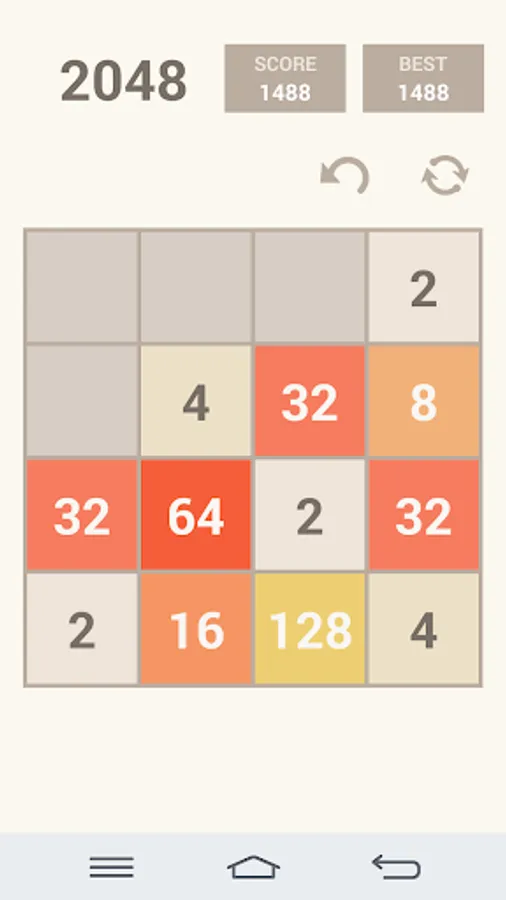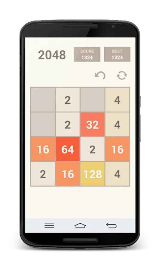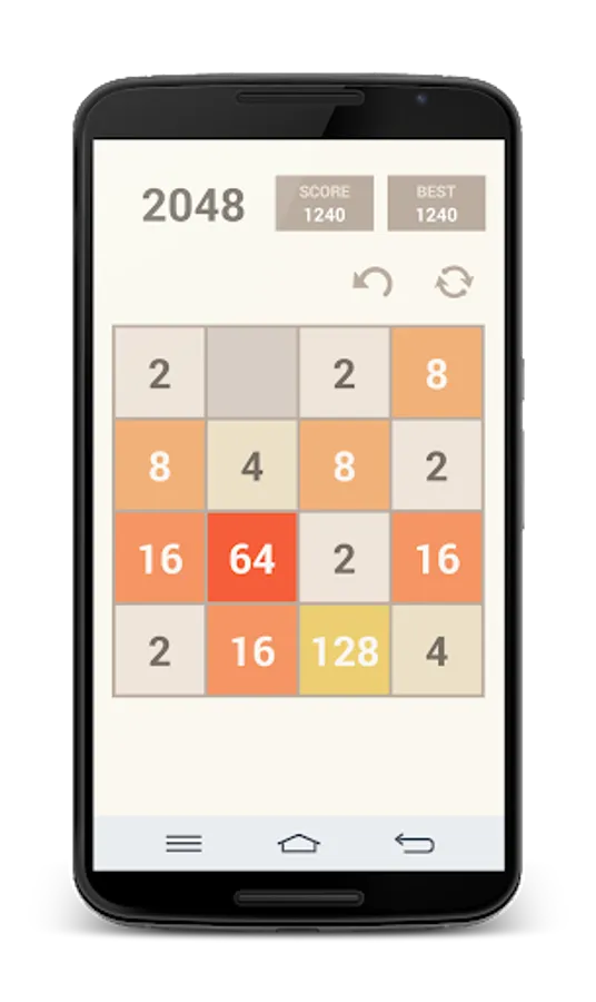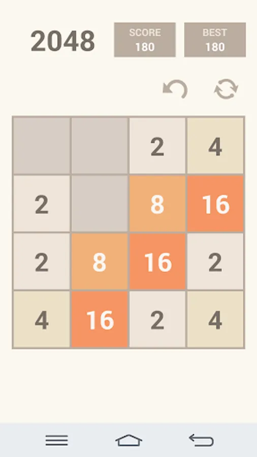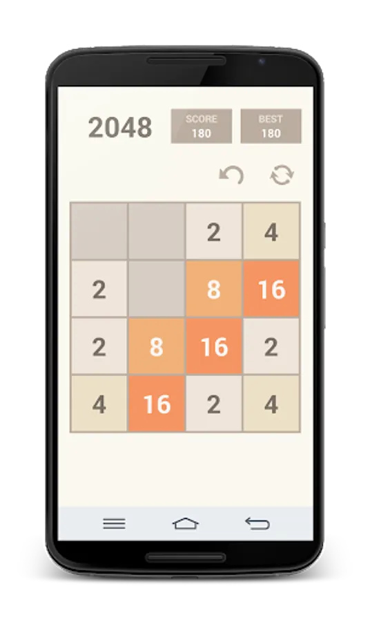 2048 game is played on a simple gray 4×4 grid with tiles of varying colors overlaid that slide smoothly when a player moves them.To move tiles left, right, up, and down just slide your finger to desired direction. If two tiles of the same number collide while moving, they will merge into a tile with the total value of the two tiles that collided. The resulting tile cannot merge with another tile again in the same move. Higher-scoring tiles emit a soft glow.Every turn, a new tile will randomly appear in an empty spot on the outer frame of the board with a value of either 2 or 4.