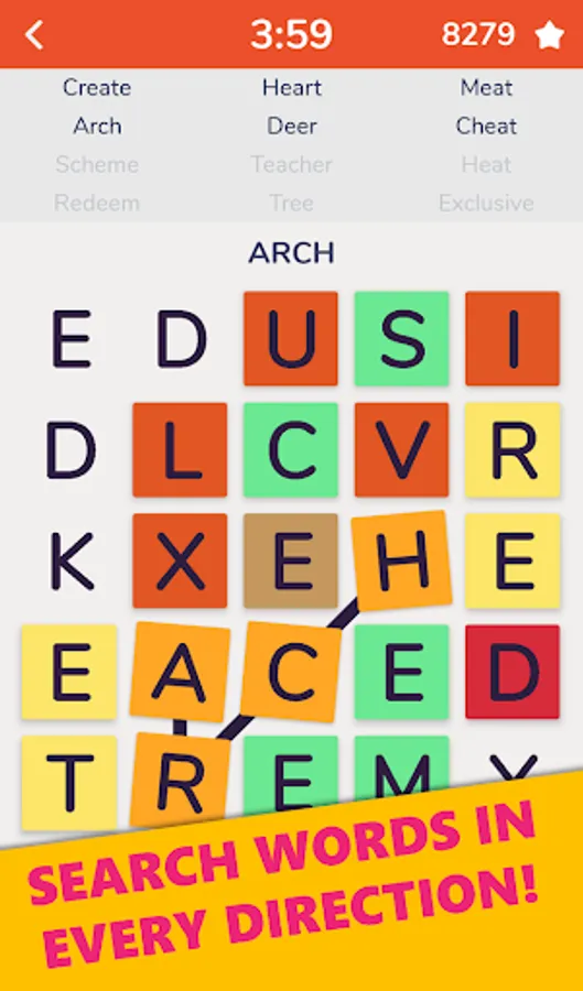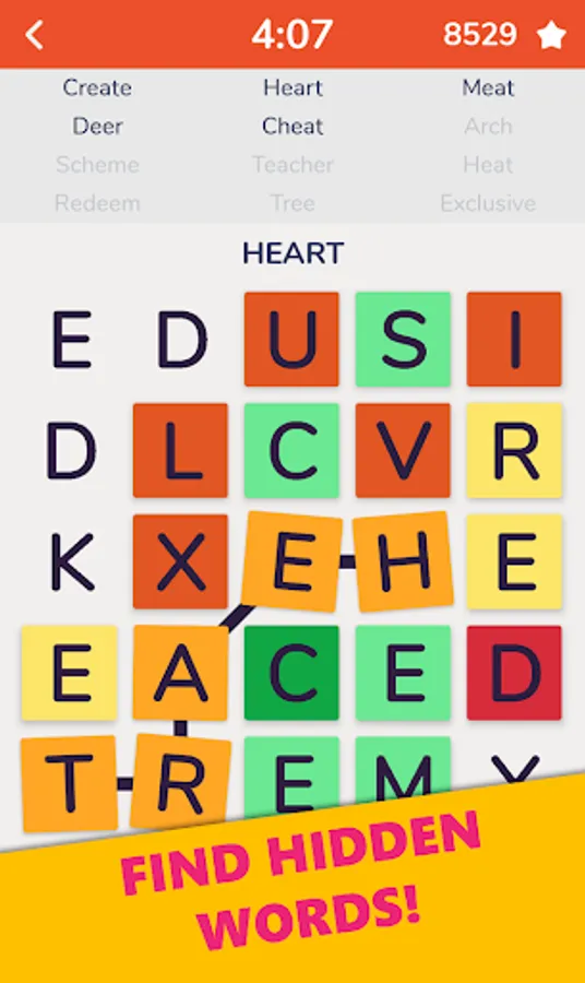 Find words hidden in the grid. Similar to classic word find games except the words are not hidden on straight lines. It is simple yet challenging and even more fun with online scoreboard feature on Google Play.