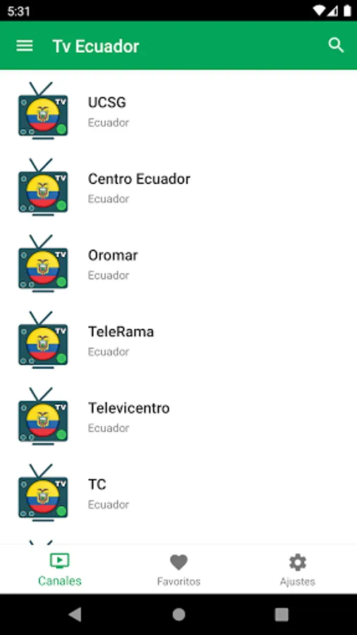 In this app you will be able to watch Ecuadorian television in hd and view Ecuadorian channels on your phone or tablet, live Ecuadorian TV.