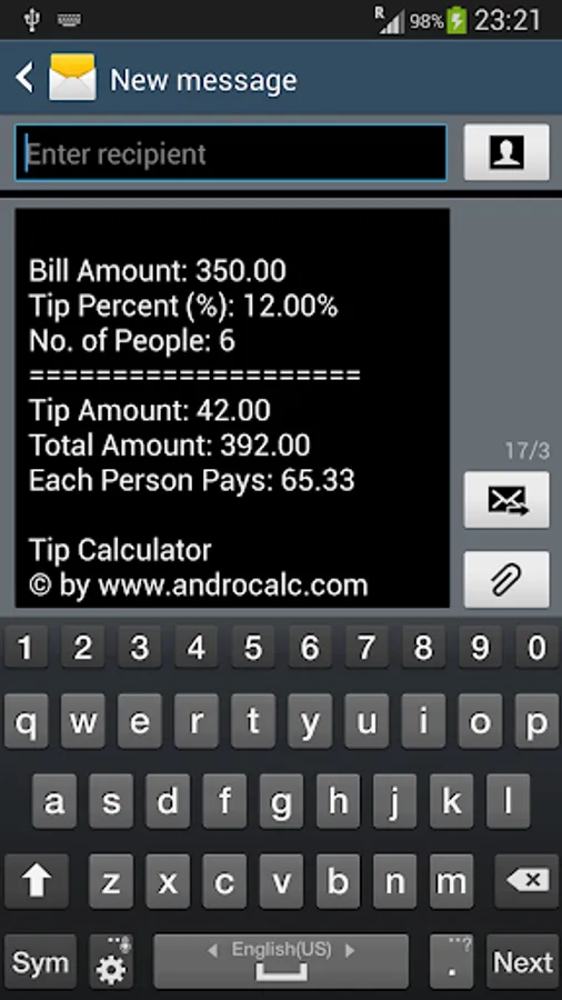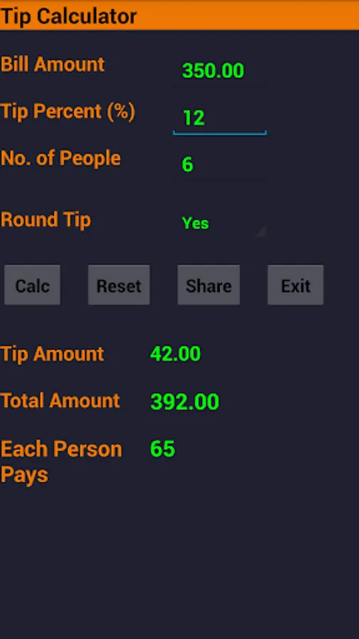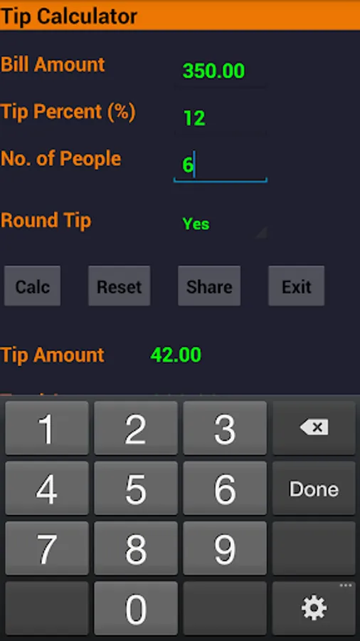 This tip calculator app calculates tip easily and helps you to split the bill between any number of people.
