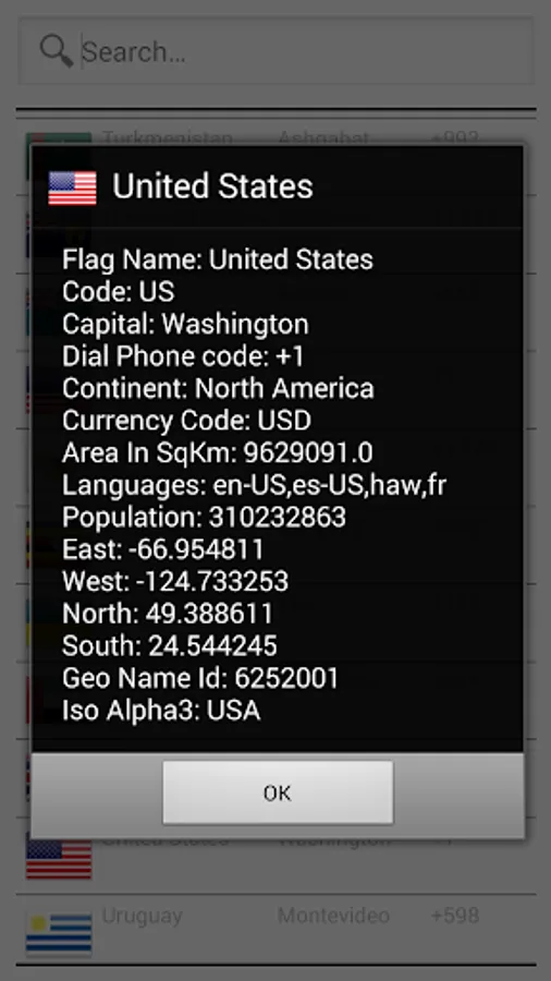 This version of worldmap come with a brief information about every country like: Country capital city, dial code, country code, country continent, country currency code, the country area in sq km, country languages, numbers of the population and the GPS geo points east, west, north, south, geo name id, flag iso Alpha3 .