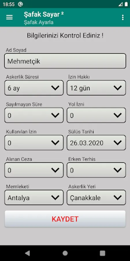 Şafak Sayar is very simple to use, enter the date of Thuluth, then I recommend that you fill in the required information on the Military Settings page completely. Good Wishes...