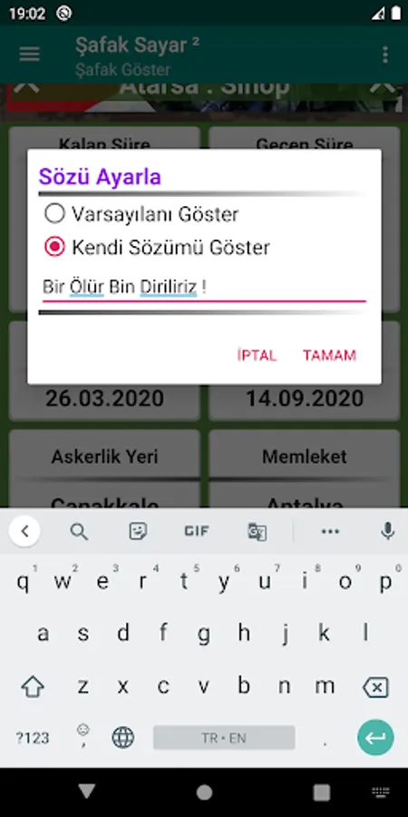 After entering the military information in the settings section, you can calculate the dawn by saying save. Before recording the dawn information, we recommend that you enter the help section in the menu.
