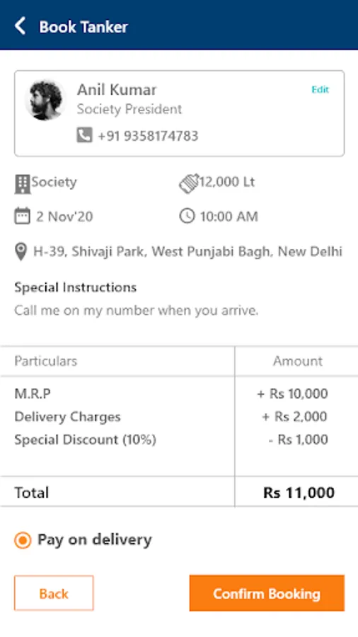 Manage all your orders easily. Add users to give access to book tankers at your location.