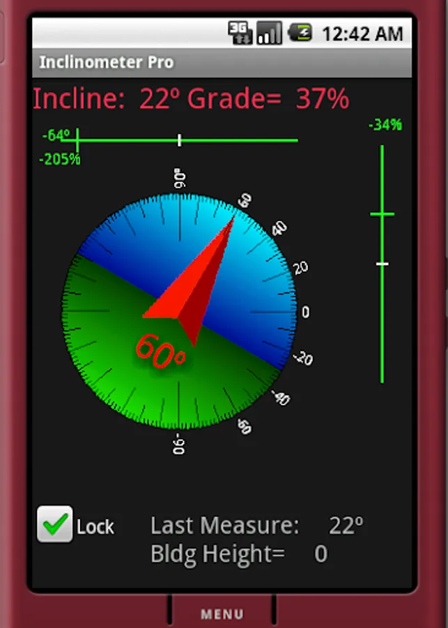 Get "Inclinometer Pro" for pitch/roll info, quick calculations, measurements, grade, and graphics!