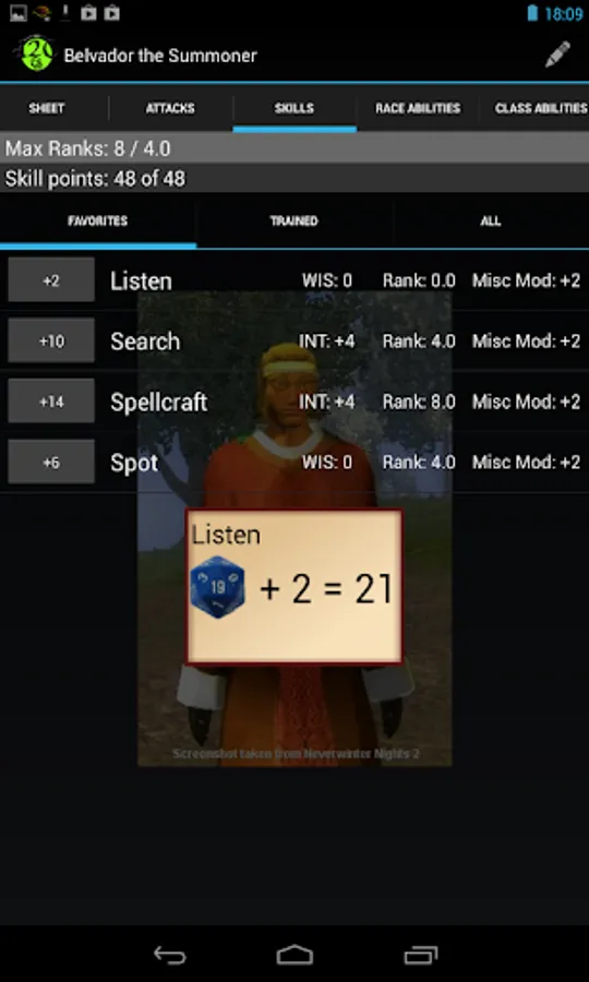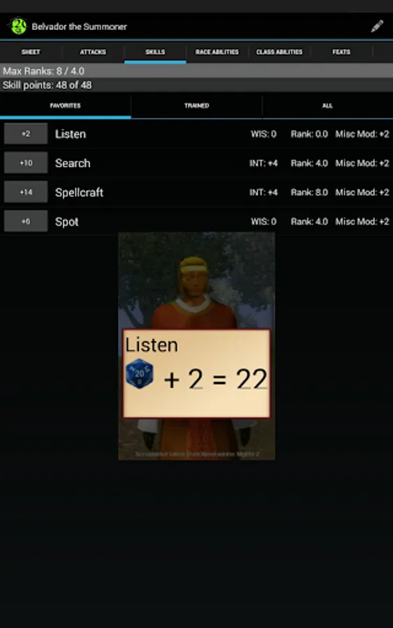* Enter your rank and misc modifier. The skill modifier is calculated