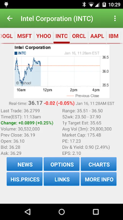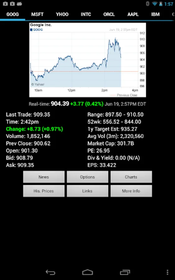 • Stock Quote with real-time, after-hour, pre-market quotes on NYSE and NASDAQ stocks
