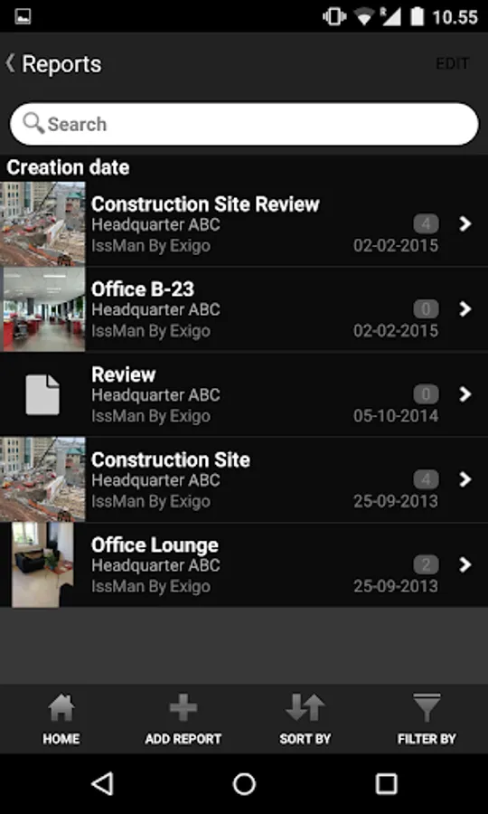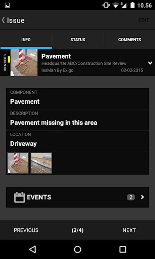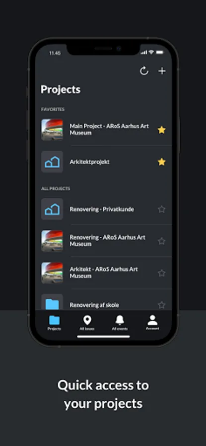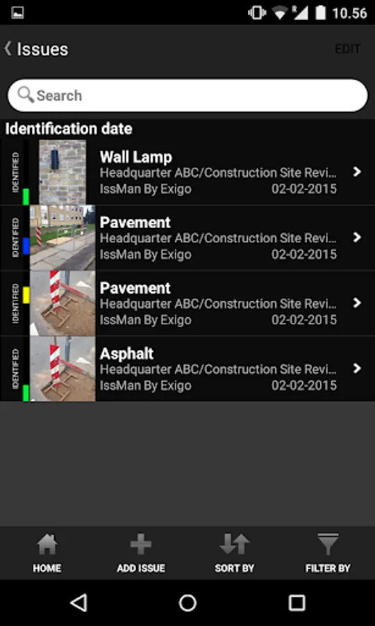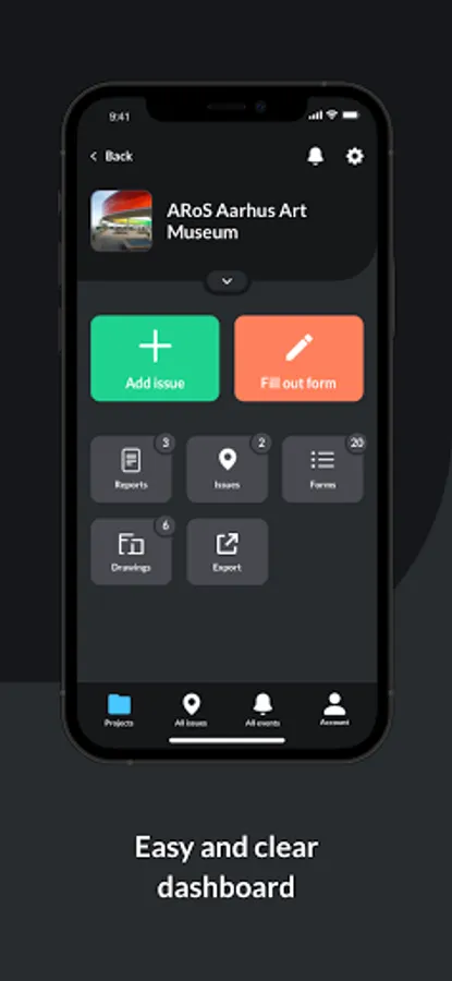 ISSUES: Add an issue from your device when you spot it. Issues contain all the information you need to identify a defect, safety issues or for photo documentation.