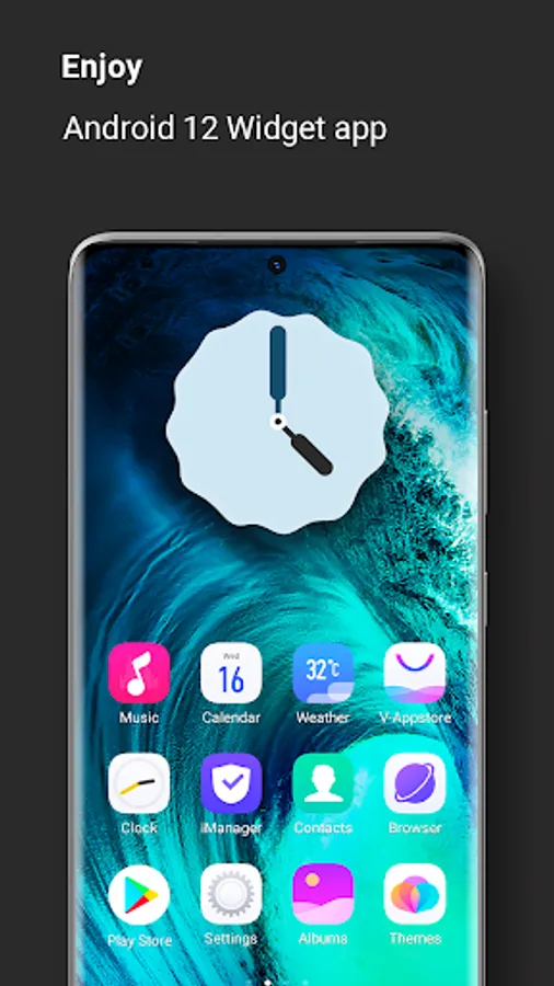 This app provides clock widgets, display android 12 o'clock widgets, and battery widgets, battery percentage in the same style as those found on Android 12, and an "android 12 clock widgets" is a self contained app that does not require the use of any other apps in order to set up widgets.