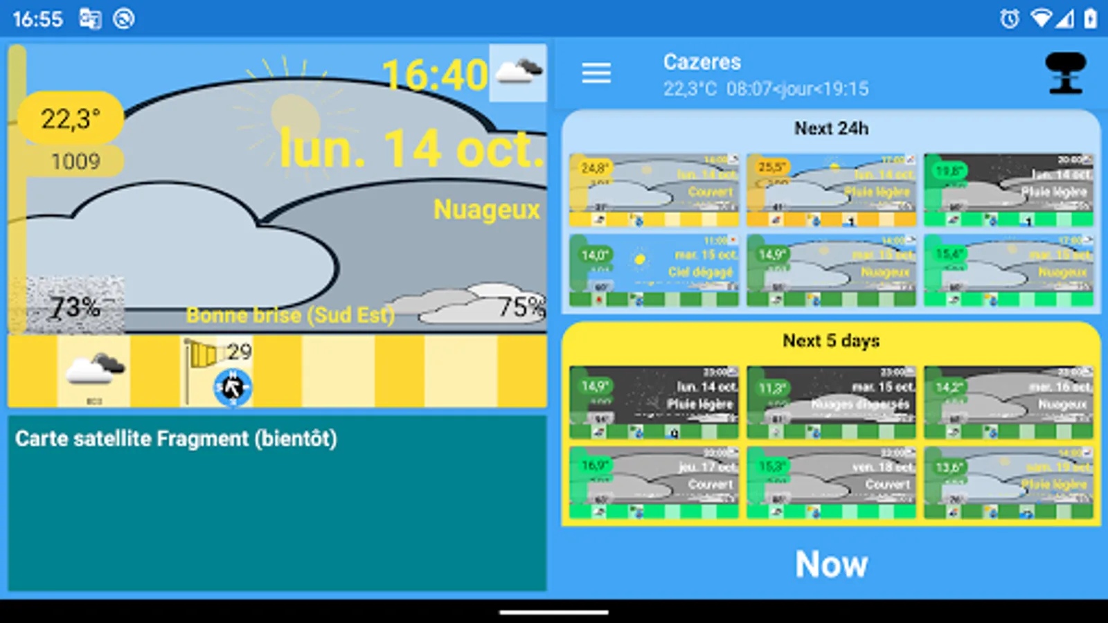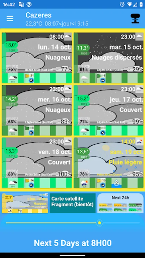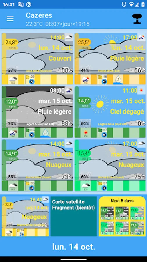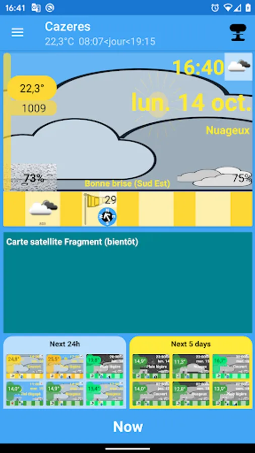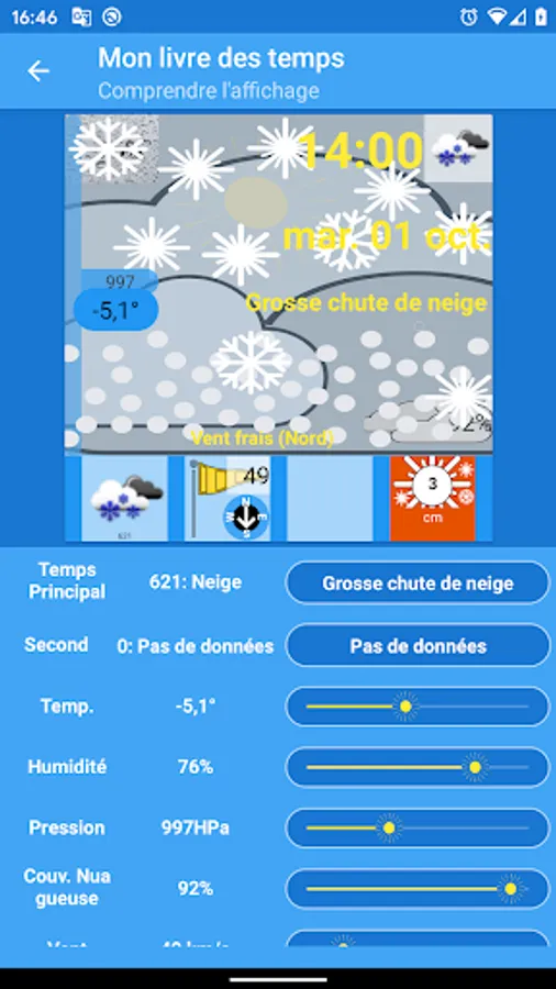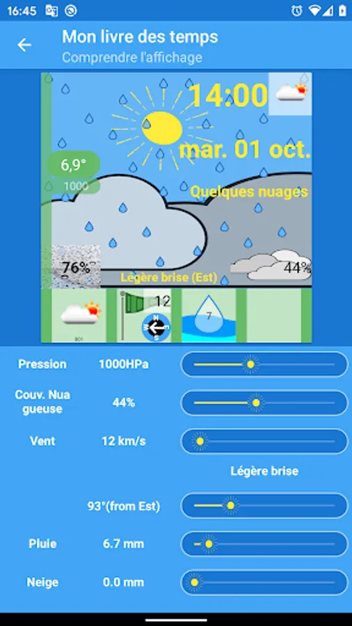 The first objective is to obtain a new way of describing meteorology. There are no longer temperature graphs but an image that represents the weather. This image is updated according to the weather: Temperature, cloud cover, rain, snow, winds. You understand intuitively.