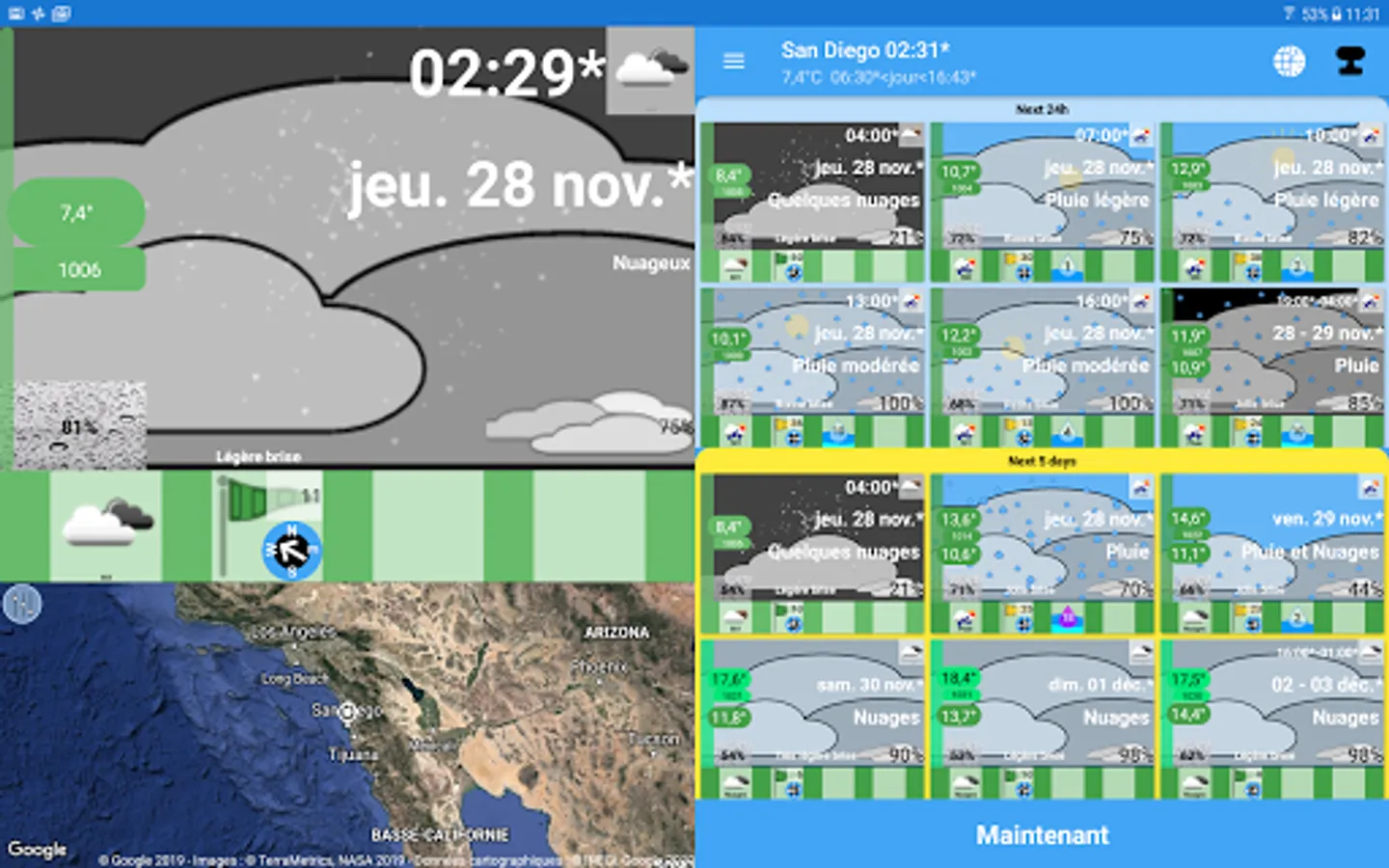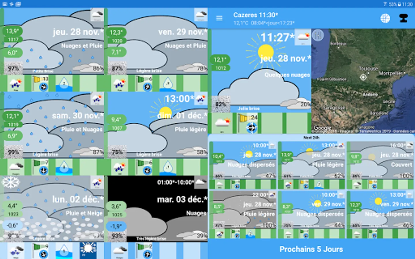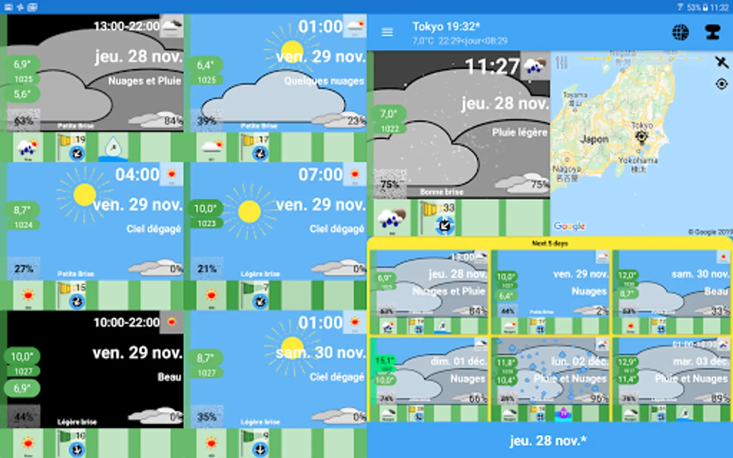 The first objective is to obtain a new way of describing meteorology. There are no longer temperature graphs but an image that represents the weather. This image is updated according to the weather: Temperature, cloud cover, rain, snow, winds. You understand intuitively.