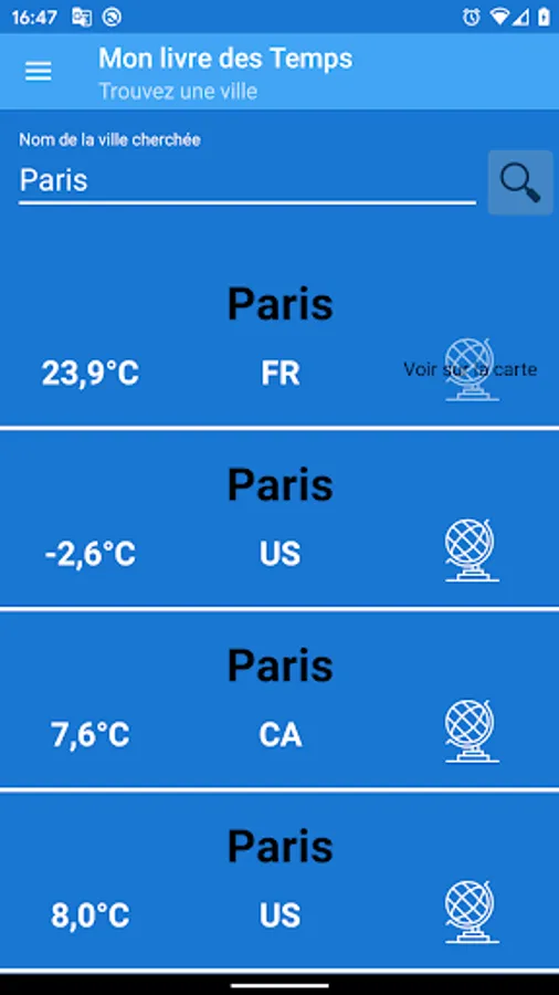 Thus, you can add several cities or localities, you can know the current time easily.