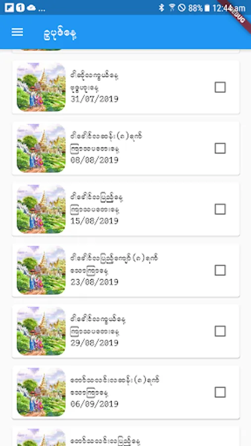 App will show the days for Uposatha (called ubot nei) and will show the Pa-Auk Tawya Sayadaw's dhamma ebooks to download and read for users.