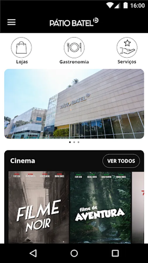 The Pátio Batel application offers shopping customers special services: find your car in our parking lot through the Find My Car tool, buy your movie tickets, check the event schedule and receive exclusive offers when you are close to the mall (just enable the background location usage).