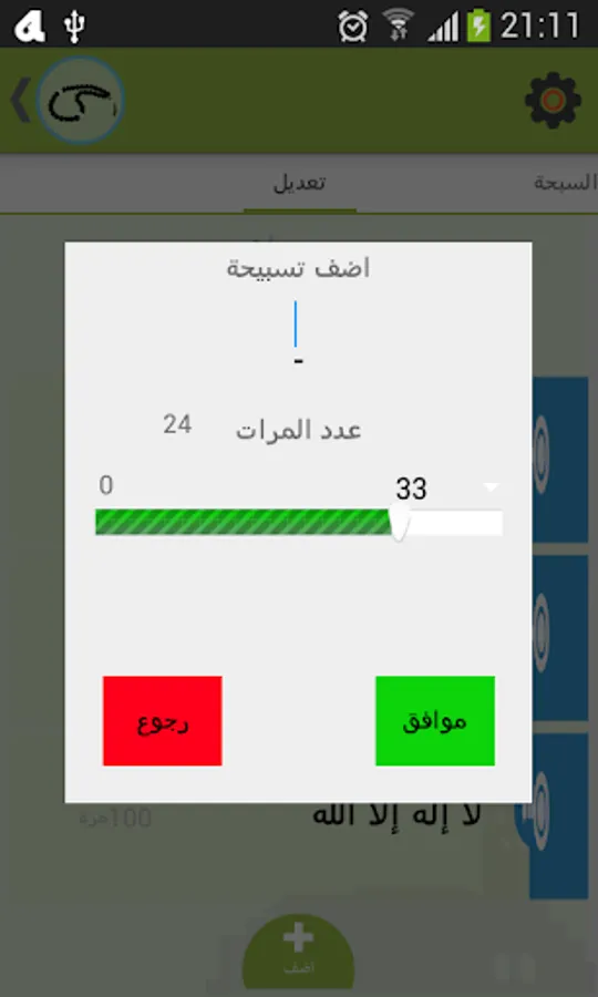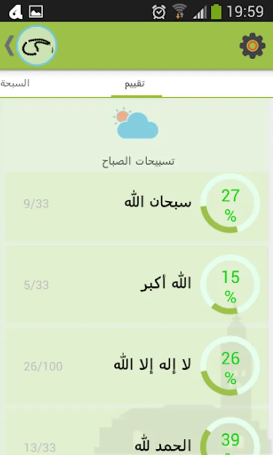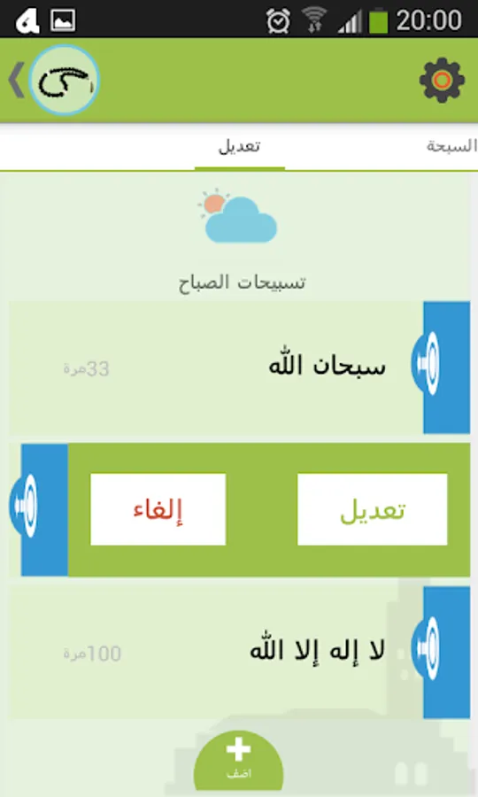 • The user can modify the recommended daily tasbihat or cancel them and add his own tasbihat