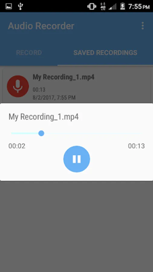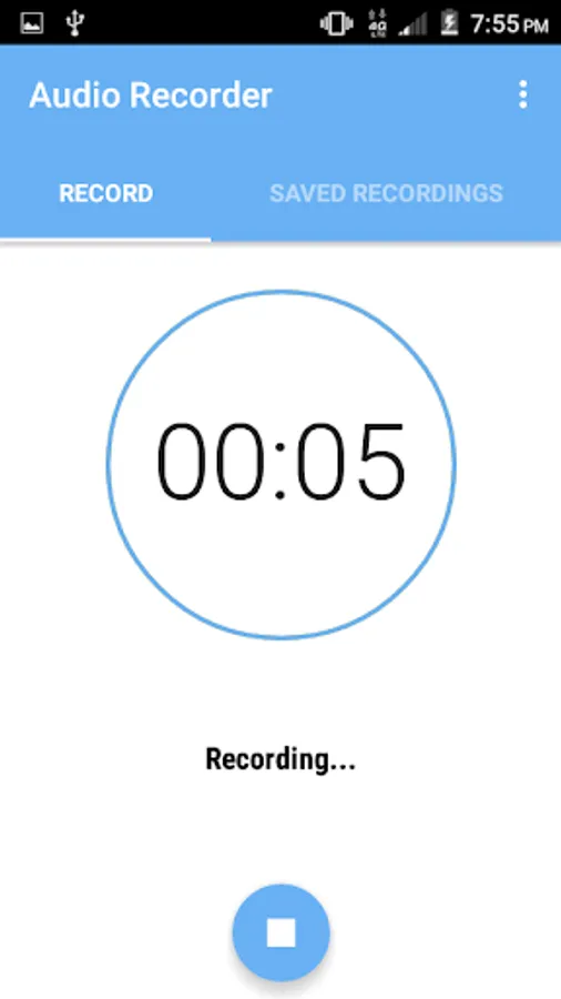 (This sound recorder creates a folder on you SD card named "SoundRecorder." You can go to this folder to retrieve your saved recordings or you can pull up directly from the app.)