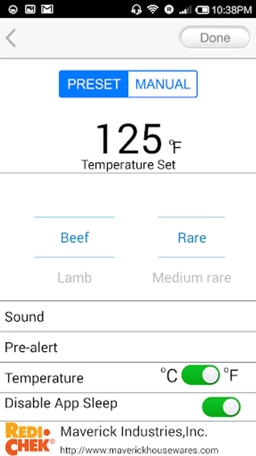 * Set the temperature for 16 different type of meats and 2 type of foods with pre-set selected temperatures.