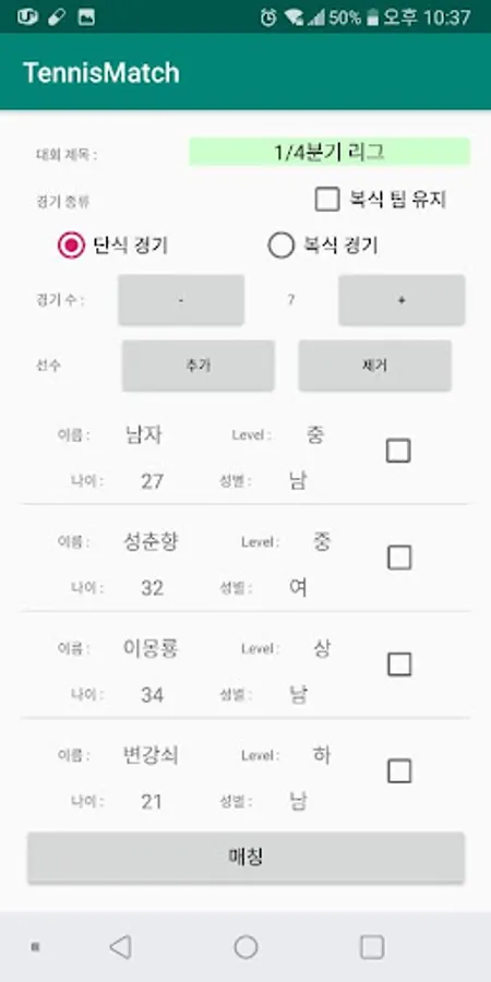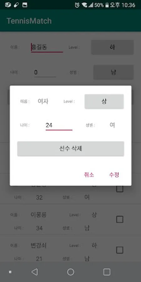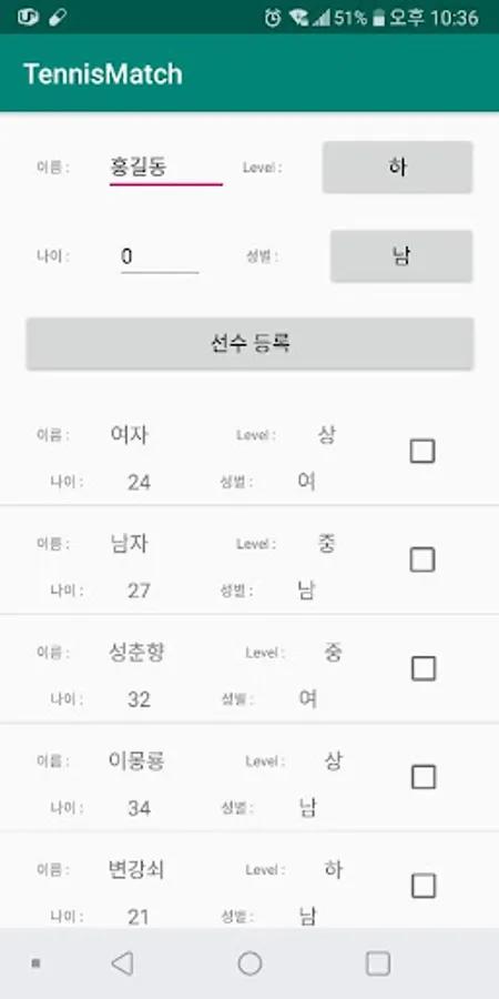 1. Player Management-You can manage by setting the name, age, level, gender.