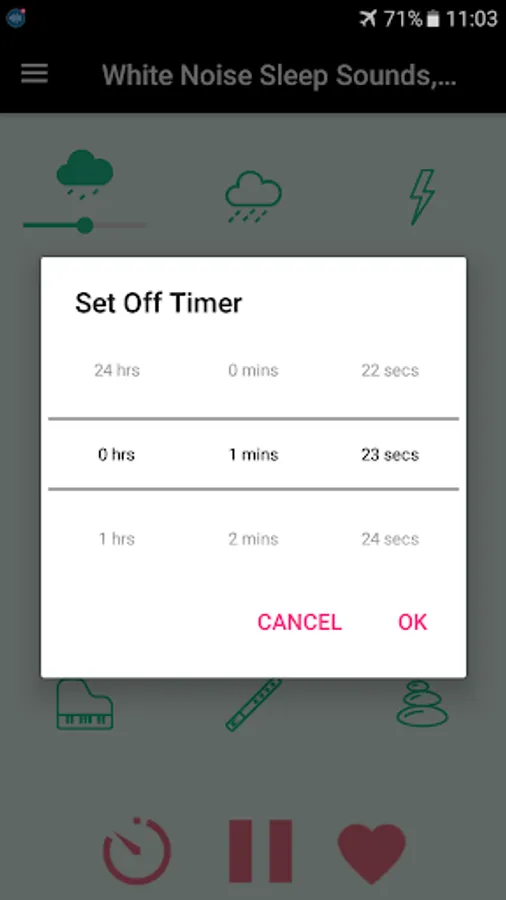 You can set the timer and put your app in background or turn off the screen. At the end of the time, the sound fades gently and the application closes by itself. So you do not have to worry about closing the app if you fall asleep.