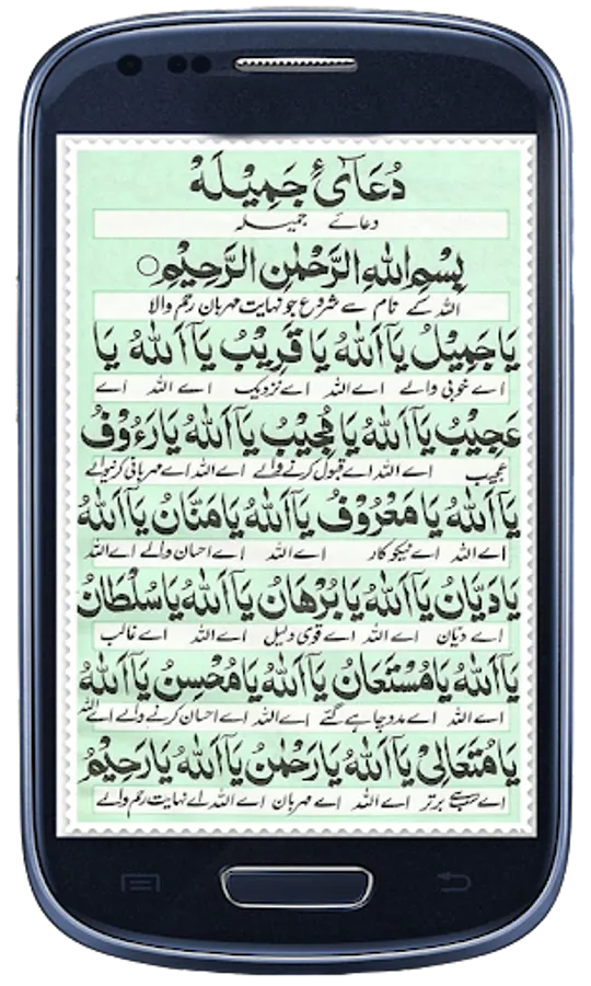Whosoever recites Dua e Jameela or keeps it with him, his face on Dooms day will be bright like the moon; and the atonement of missing the prayers will be forgiven; and while in Journey will not feel lazy in saying the prayers; and when he shall rise from his grave on Dooms day people will say 'which messenger of God is he?, then the Almighty Allah will reply 'He is not a messenger but one who recited Dua-E-Jameelah with earnestness, that is why this gift and survey is for him. And Allah, the Most Merciful shall grant him the entry into Heaven on the Day of Judgement.