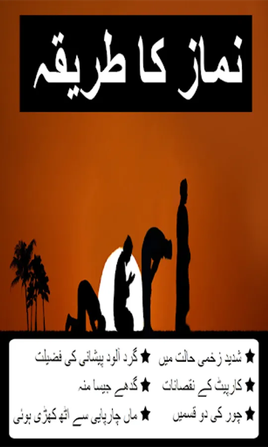 Namaz ka tarika is an Islamic app for muslims men or women. Namaz ka tarika app contains basic information regarding Namaz, mukamal namaz ka tareeqa. Namaz ka tareeqa is about the proper way of offering your prayers. Namaz ka tarika is the best application that gives you better method of offering prayer. Share Namaz Ka Tarika with your friends and family.