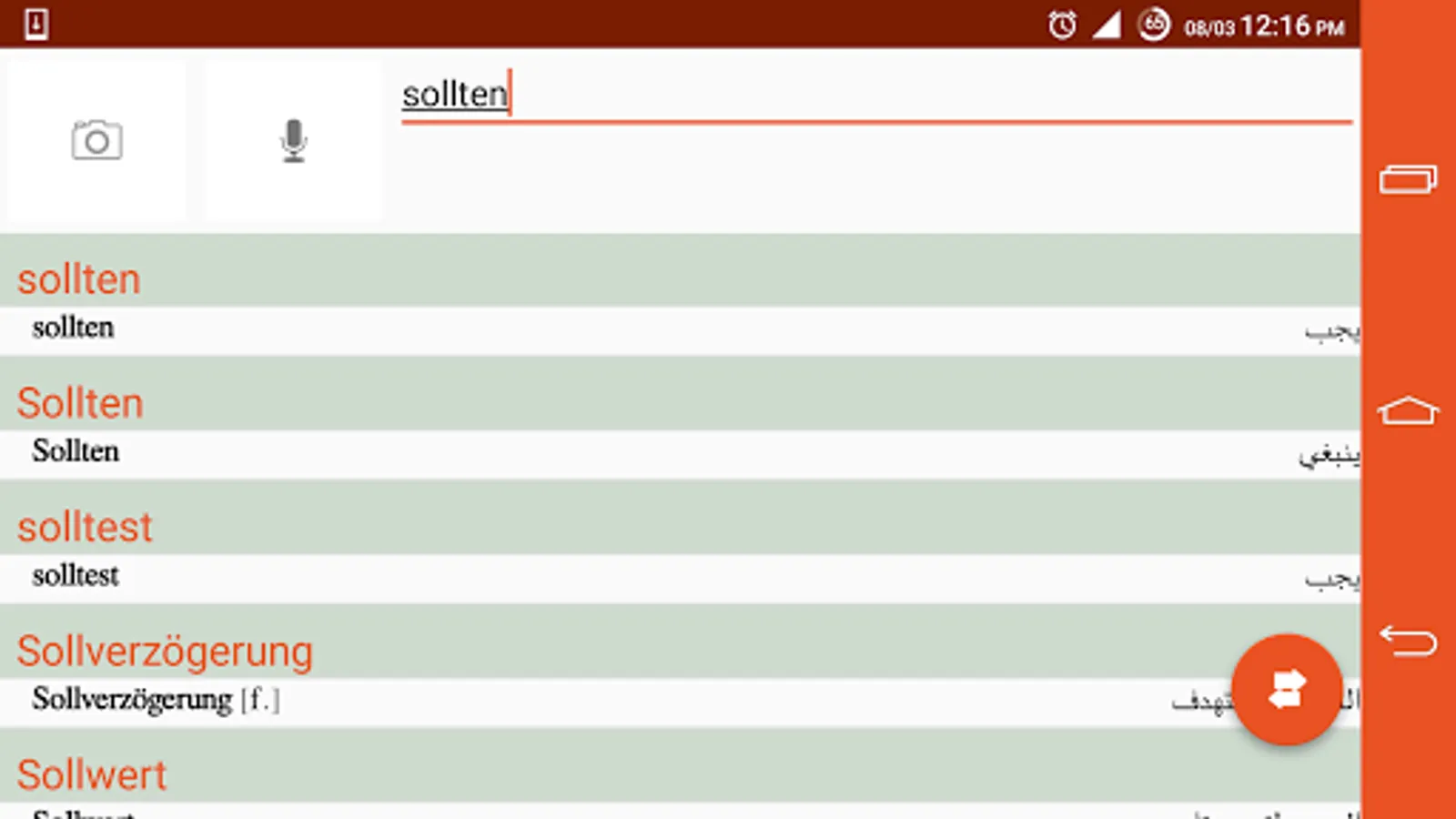 A German-Arabic dictionary and a German-Arabic dictionary allows you to translate words from Arabic to German and vice versa without having to connect to the Internet and free.