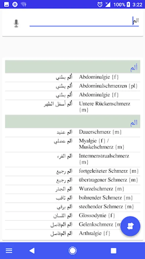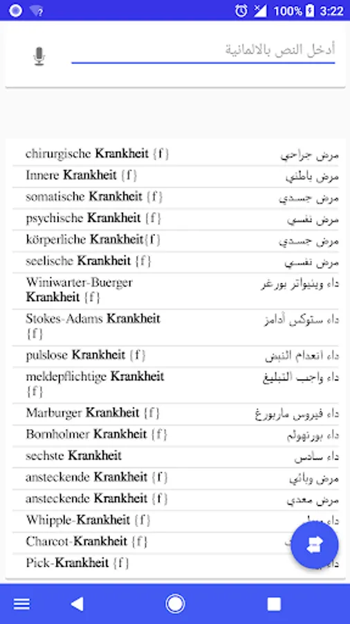 Stronger medical dictionary from German to Arabic and vice versa without the Internet, the dictionary contains the following features: