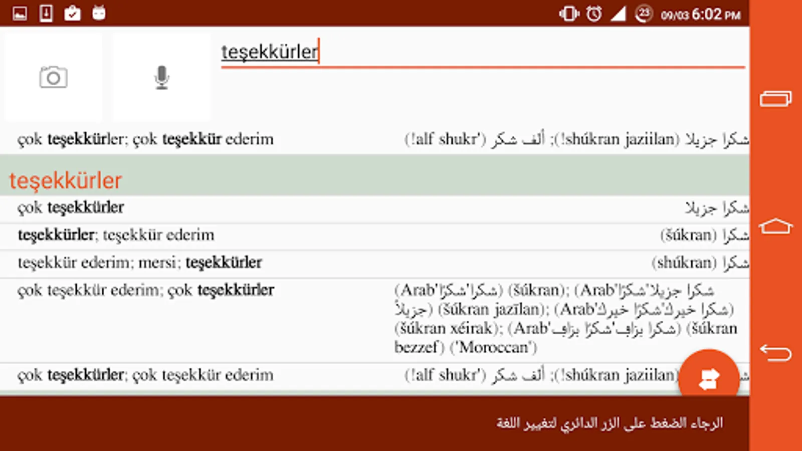 قاموس عربي تركي وبالعكس يسمح لك بترجمة الكلمات من اللغة العربية إلى التركيه وبالعكس دون الحاجة للاتصال بالإنترنت ومجانًا.
