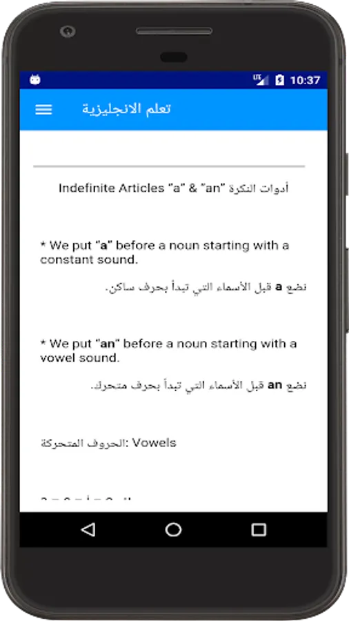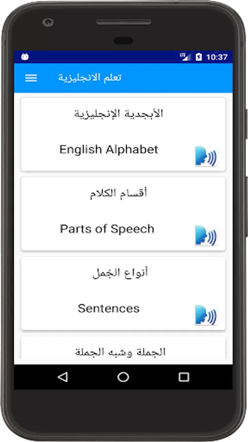 This application is designed to help For arabic speaker to learn English that you can use in your daily life or in your studies and can be used in learning English for children. The application focuses on English grammar with examples, as well as a wide range of common and important phrases and phrases that help you start talking to others.