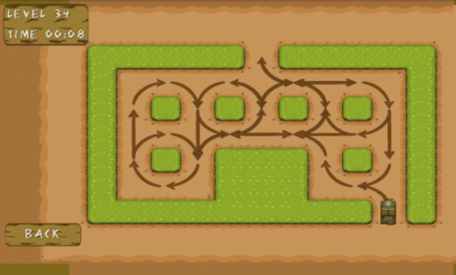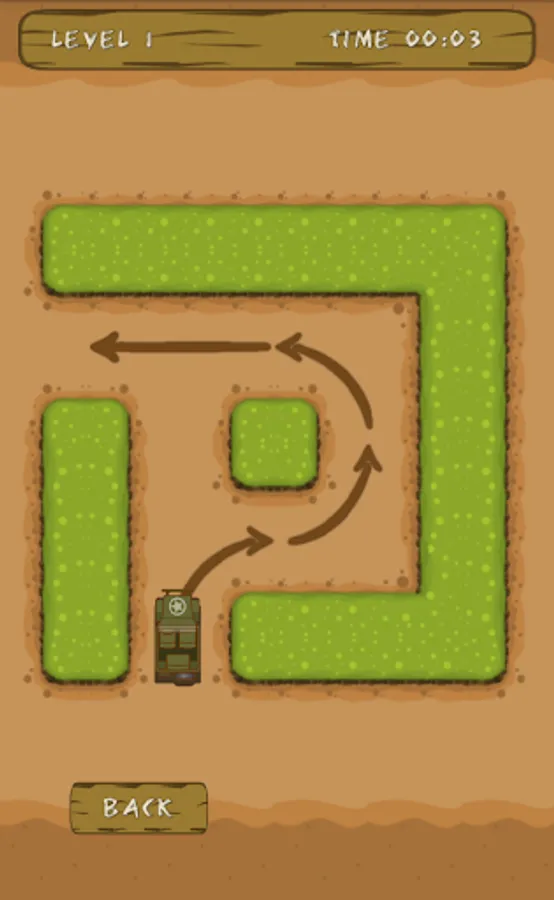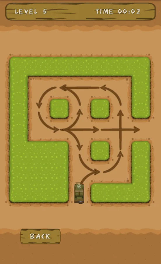 Navigate military car to get out of the maze. The task is not so easy, as you can only move in the directions showed by brown arrows. Other directions are not allowed. Try to combine directions, to get the car out of the maze. Move the car by swiping finger in the specified direction, or tap left/top/right/bottom part of the screen. This way car will move in the one of allowed direction.