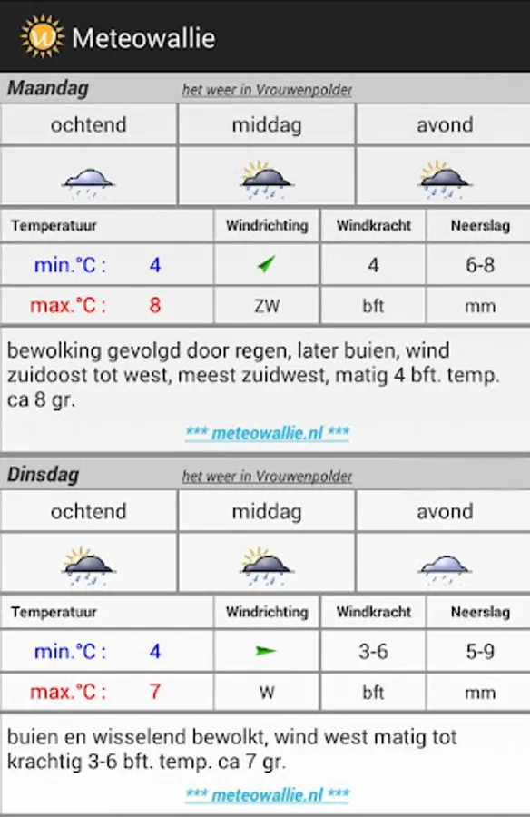 Wallie's weather office with the multi-day forecast of the weather in Vrouwenpolder - Walcheren / Zeeland.