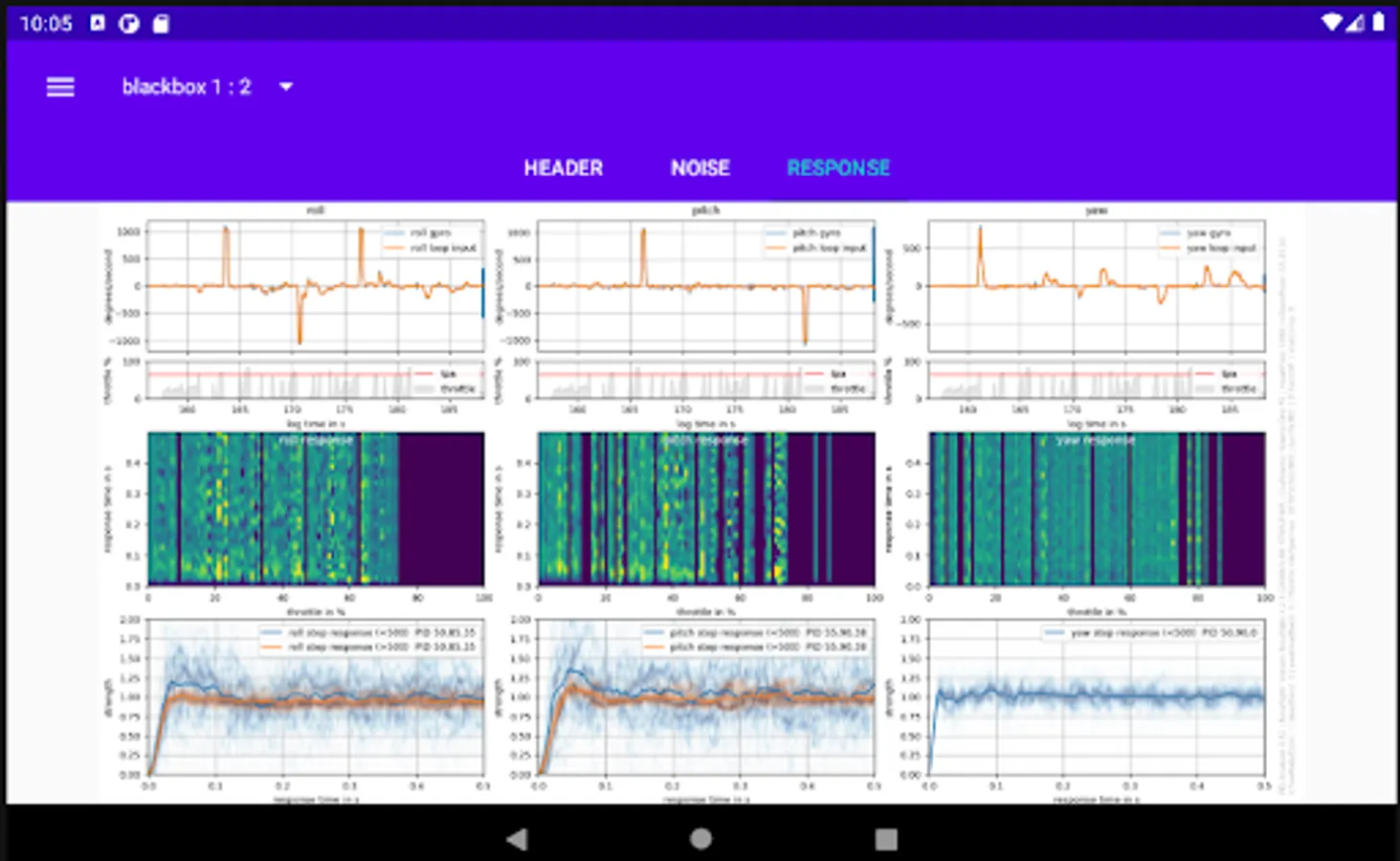 AndroidBlackBoxAnalyser is an android port of Plasmatree PID-Analyzer.