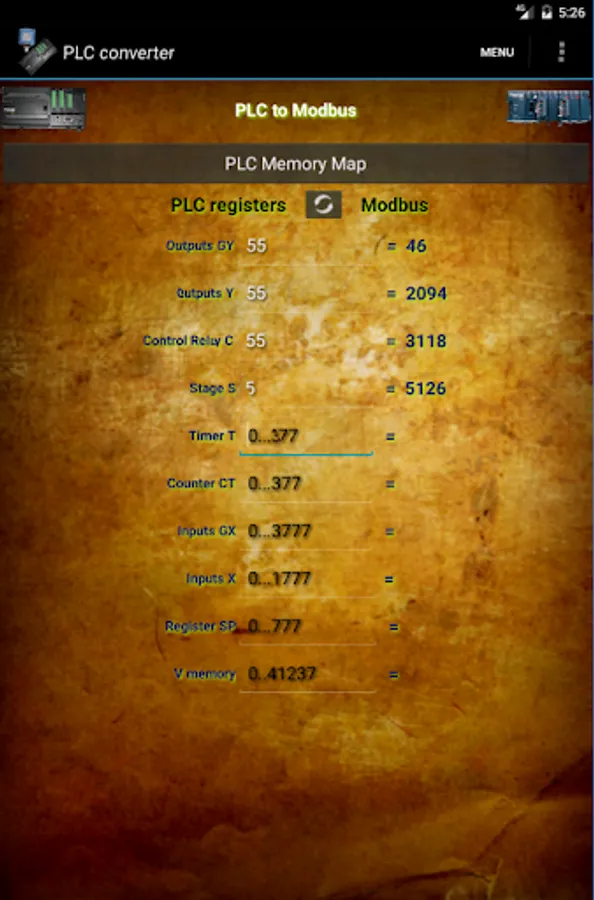 - transfer of Modbus registers to the values of DirectLogic controller registers