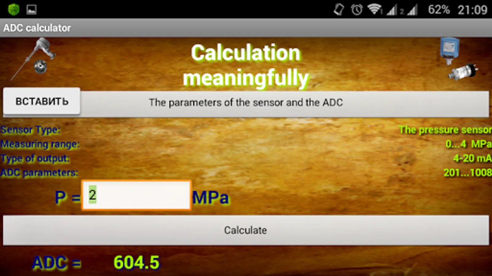 The "ADC calculator" enables you to quickly calculate the value of the sensor, the ADC value and the current value of one of the known parameters. For example, if you know the value of the current at the output of the sensor, you can calculate the value of the sensor and the ADC corresponding to a given value of current.