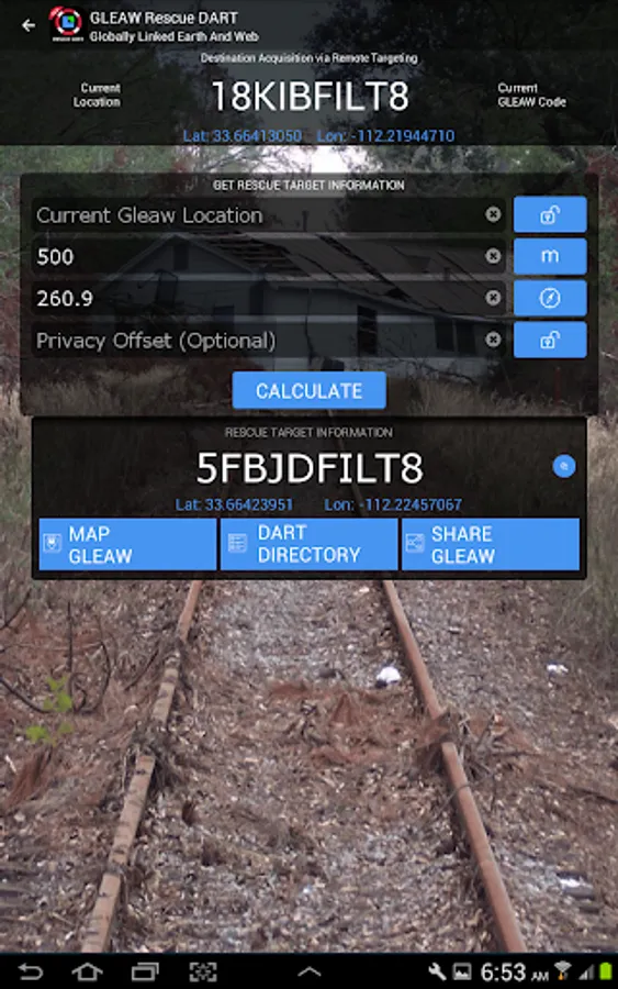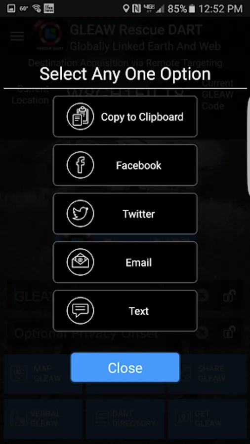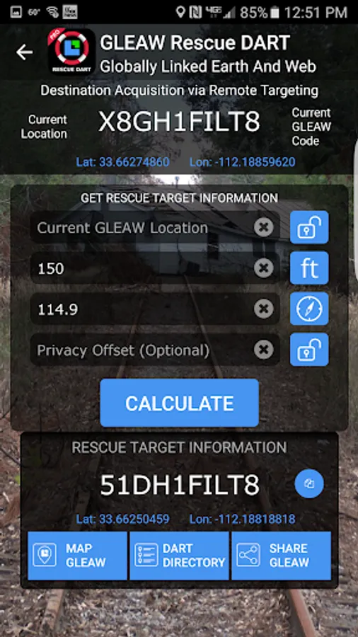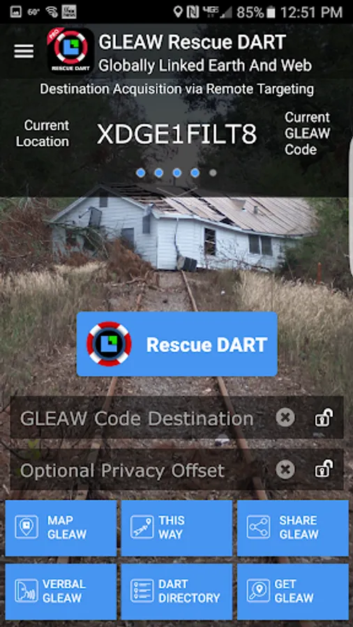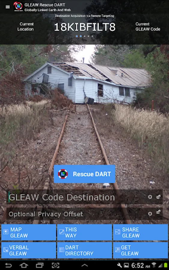 Using GLEAW Rescue DART any non-technical user can simply point their portable device at any location and in a couple simple and clear steps Save or Share that ‘DART’ed remote location with others. This can be accomplished both on or off the net.
