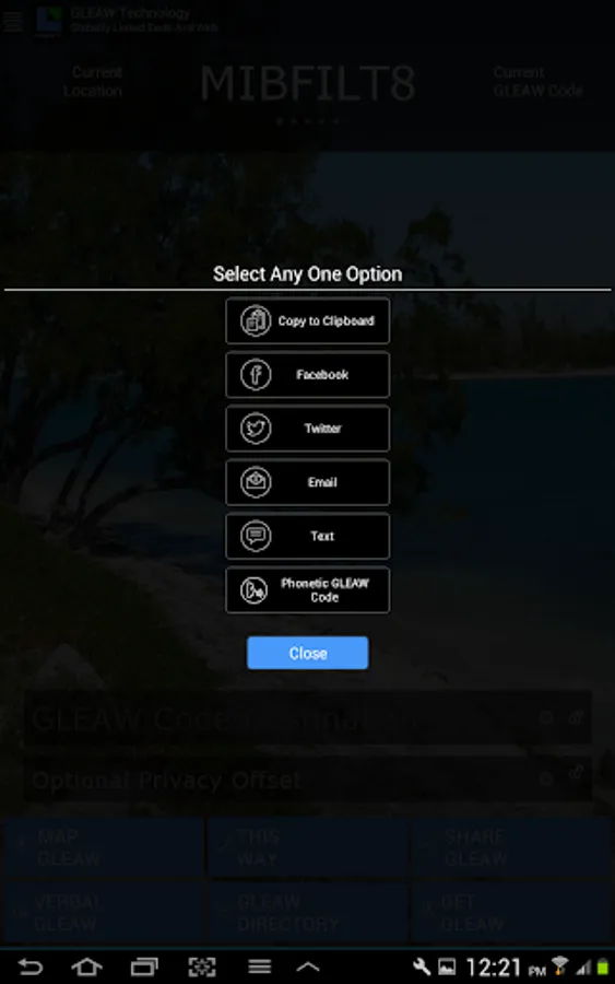 ‘Map GLEAW’ and ‘Share’ sub-menus for simplified user flexibility and selection.