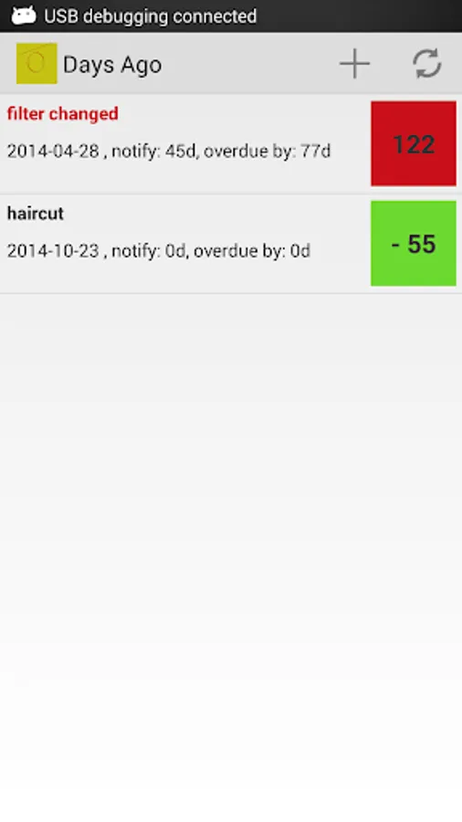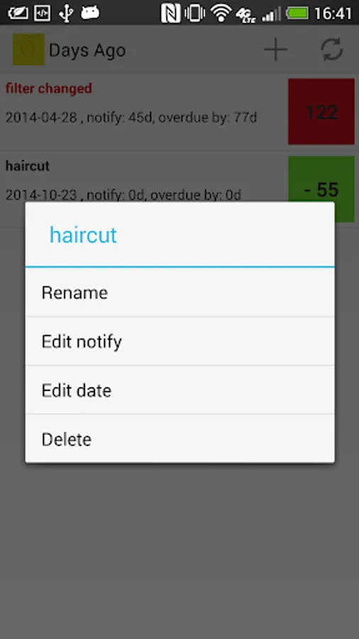 Keep track of days since a task is done last. Overdue days are shown for overdue tasks. You can set number of days to notify you. Once notification period passed, you would start seeing those tasks in red.