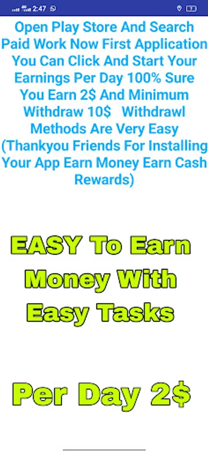 Hi Dear User's This App Is Only Make For a Right Guide How To Make Money Online Okay. In This App Telling You Easy And No Investment Just Online Work And Making Money Earn Cash Rewards Money Guide Easy In This App Features Just Guide The User How To Earn Money And Earn Cash Rewards On Online