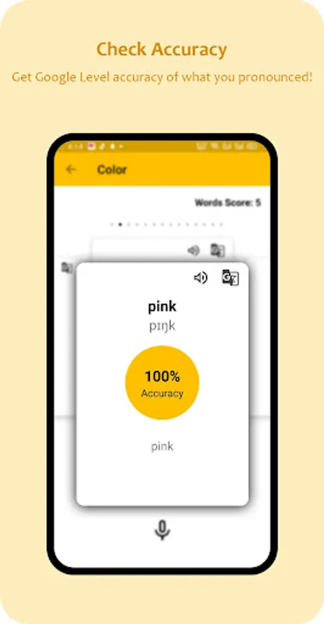 - The app will listen and inform you how accurately you pronounced it!