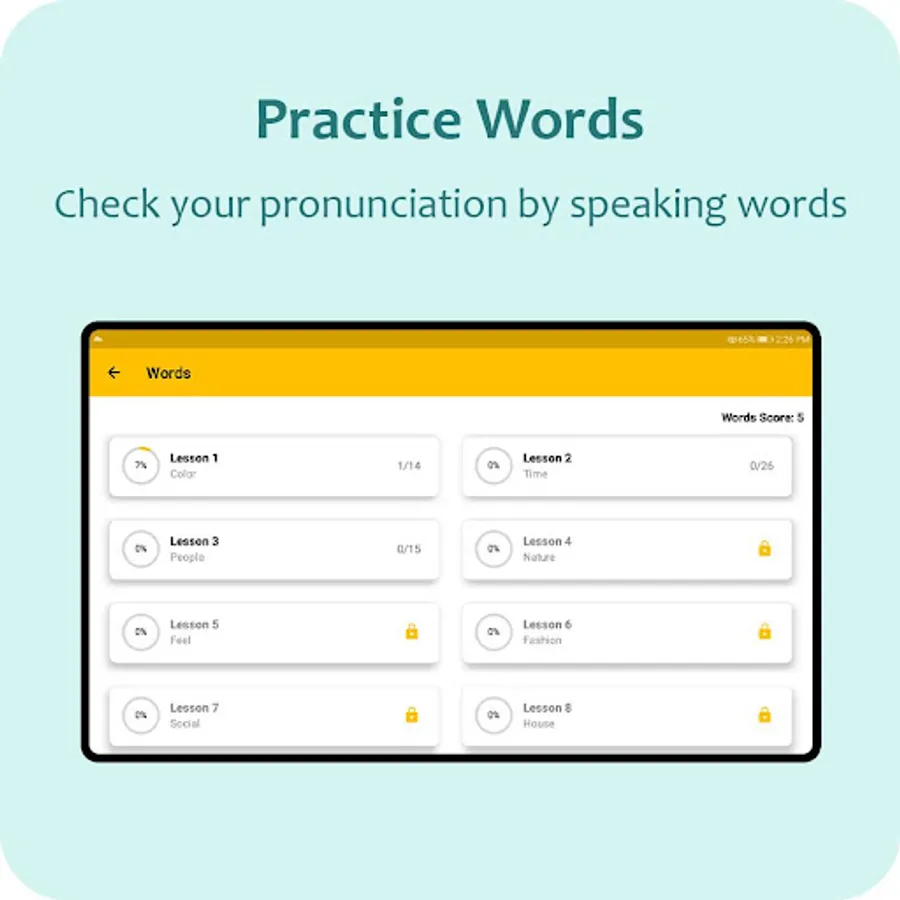 The app contains a Word Practicing section to teach you English Pronunciation. First, the app speaks the word with Text to speech, and then it is your turn. You have to speak the same word and the app would listen.