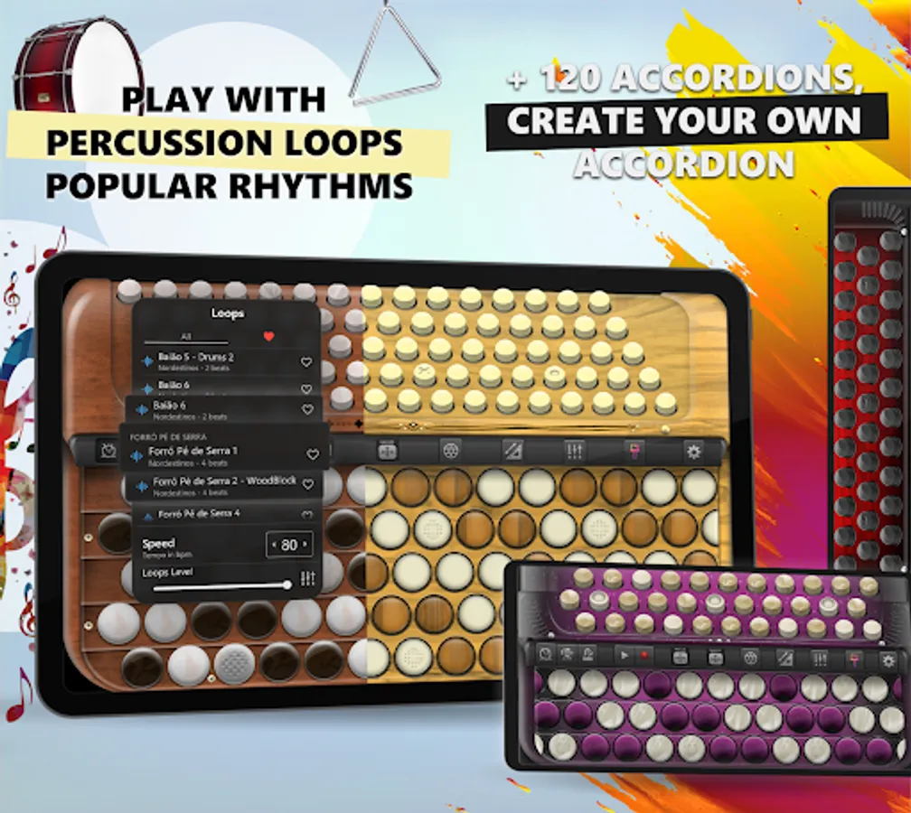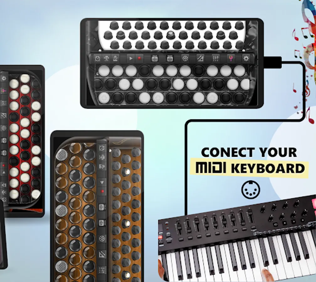 Accordion Chromatic Button is a complete chromatic button accordion application for tablets and smartphones. Its highly customizable interface makes you able to fit it in your device screen in the best way.