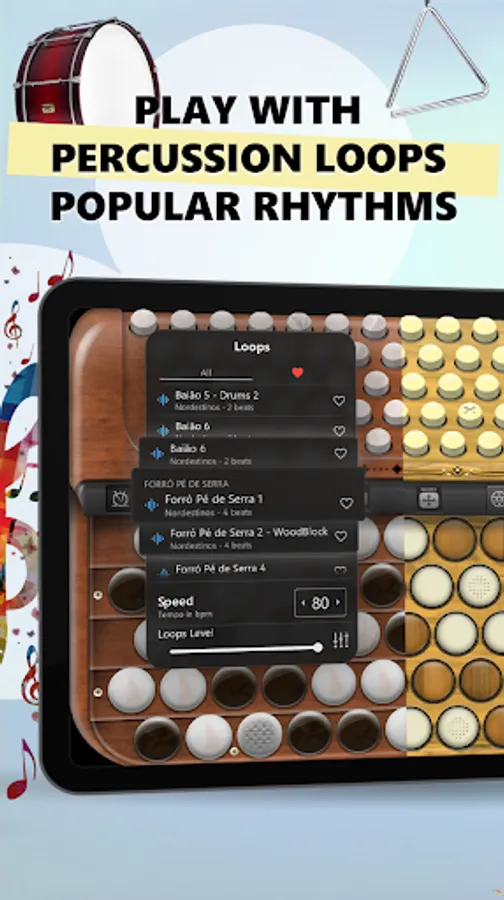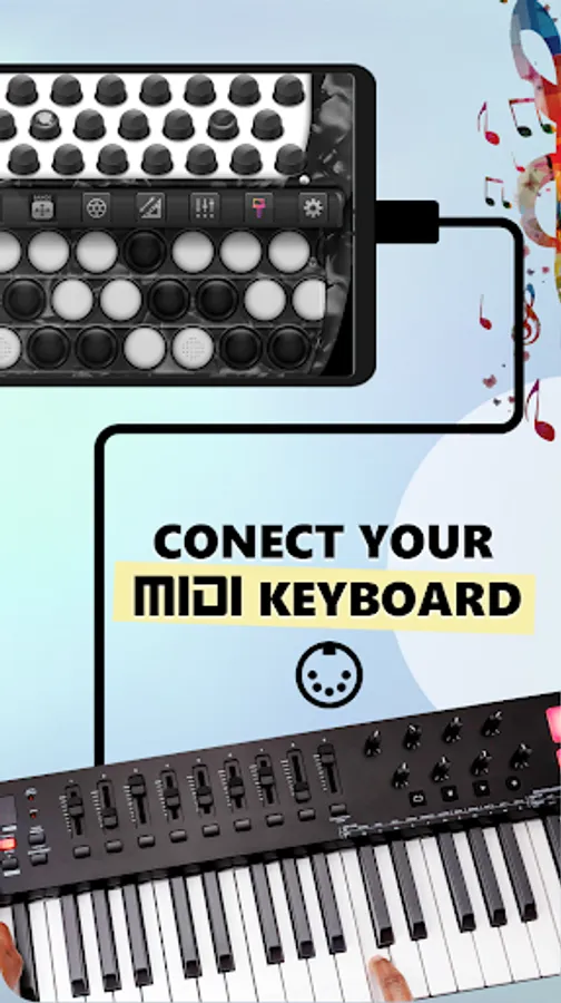 ✓ Enable the device vibration when pressing a button. Adjust the "Sustain" in the buttons and basses. Change the way in which the sounds will fade (fade-out). Among other adjustments.