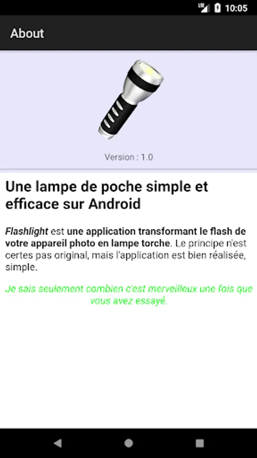 Flash Tools is an application that turns your camera flash into a flashlight. The principle is certainly not original, but the application is well done and simple