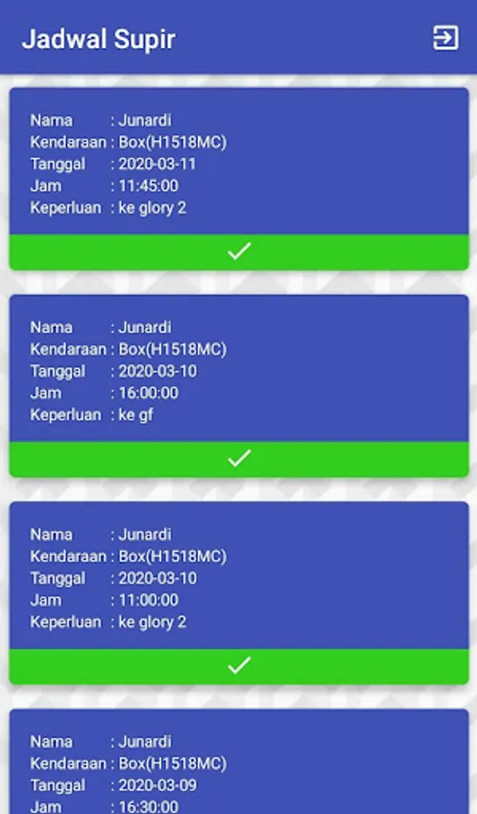 Application for delivering schedule information for drivers working at PT Glory Industrial Semarang