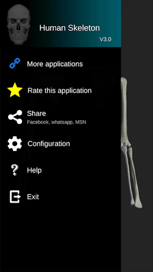 It gives information about the anatomy of the human skeleton. In a model in third dimension (3D) highly detailed.