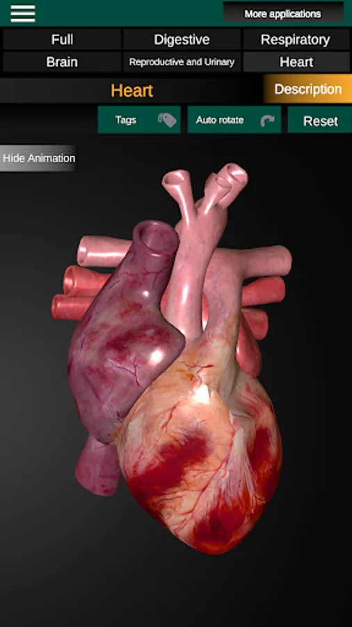 * Heart, which includes the atria, ventricles, aorta and an animation of this organ.